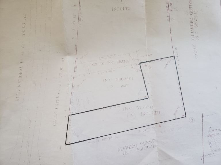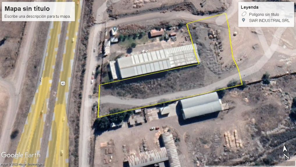Cuenta con frente Oeste con entrada frontal por calle Lat. de ruta 40 de 36.65m2, siendo sus límites, al norte de aprox. 110 m por calle con Galpón con Oficinas Fracción 2, y al sur con galpón en 160.73 mts, al este con terreno baldío en 86.44mts.