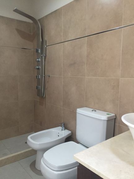 El dpto. consta de living comedor muy amplio y luminoso con cocina integrada separada por barra en mármol, amoblamientos en bajo mesada y alacenas de melamina con cantos de aluminio, baño completo para visitas, un dormitorio en suite con baño y antemano. Mesadas de mármol con bachas de apoyo y monocomandos FV y mueble de guardado en ambos banos. Dos balcones, uno integrado a la suite y otro al frente. Cocina Longvie, campana TST y caldera Dual, portero eléctrico.
