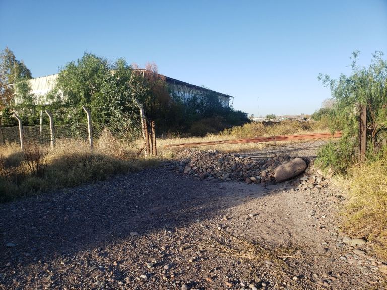 El predio está rodeado por un cerco perimetral en alambre, una zona de mampostería de uno de los 2 galpones.