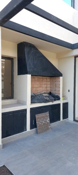 Galería techada con churrasquera. Cochera doble techada. Jardín parquizado. Carpintería externa es de Aluminio color plata y la carpintería interna es de madera lustrada a medida. La calefacción es central por losa radiante. Los pisos de porcelanato de alta calidad en todos los ambientes. Revestimientos y amoblamientos de primera calidad y excelente buen gusto.