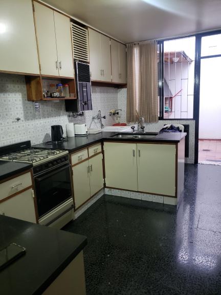 Cocina, horno empotrado, campana extractor, caldera y termotanque, A/C.