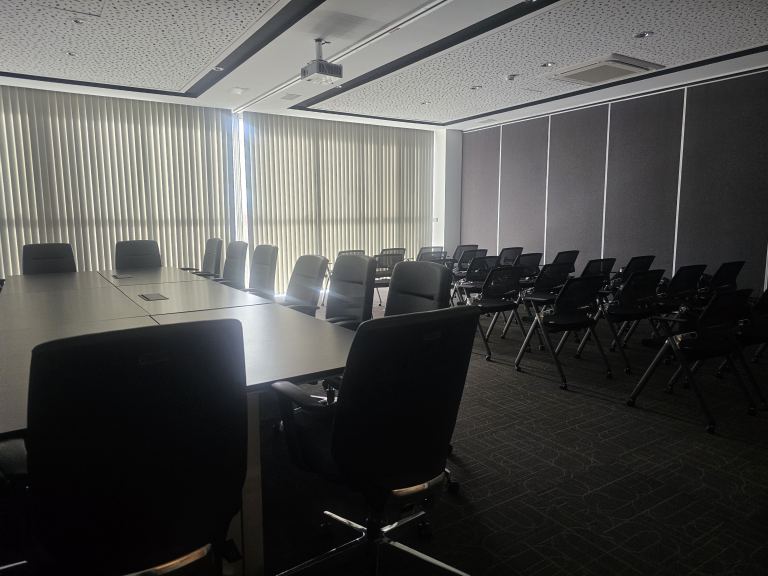 Instalados los ductos de fibra óptica para una óptima conexión. Tabiques divisorios extraresistentes insonorizados, iluminación led de última generación, altura de los cielos rasos desmontables es de 2.90 m dándole gran amplitud. 7 salas de reuniones ejecutivas para 8 a 16 personas concebidas con un diseño modernos y confortables.