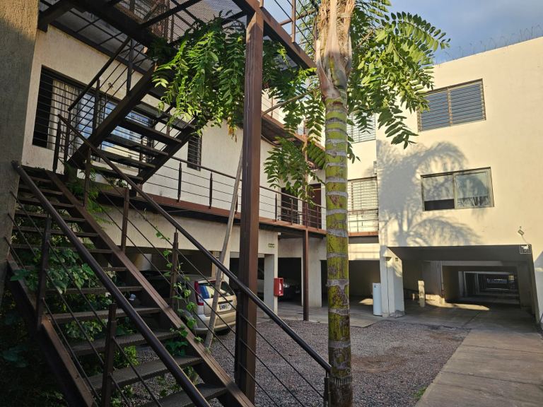 El dpto. se ubica en primer Piso por escalera, consta de living comedor, cocina integrada, con muebles bajo mesada y alacenas, un dormitorio con placares a medida, baño completo con ante baño, bacha empotrada con griferías. Los pisos de porcelanatos, carpintería exterior simple, carpintería interior madera. Todas sus aberturas con rejas. La cochera en Planta baja techada, Churrasquera en espacios comunes.